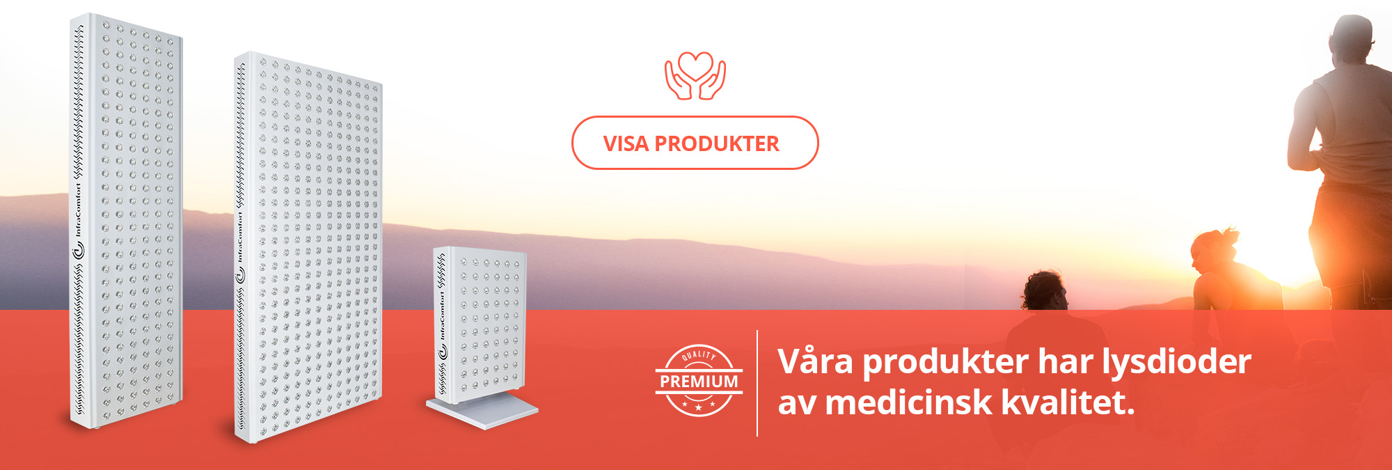 Red Light Therapy – Röd Ljusterapi (Photobiomodulation som är termen) är en naturlig, enkel och skonsam behandlingsmetod som tillför livsviktigt, koncentrerat naturligt ljus till kropp, organ, blodkärl, hud och celler. Genom att bara sitta eller stå i ljuset i 5 till 15 minuter om dagen, kan du uppleva en boost i ditt immunförsvar, återhämtning och en vitaliserande effekt på dina celler. Denna ljusterapiform ger mitokondrierna i dina celler det naturliga ljus de behöver för att producera den energi som driver din kropp och startar hudens kollagenproduktion. Våra produkter avger rätt ljus och våglängd.